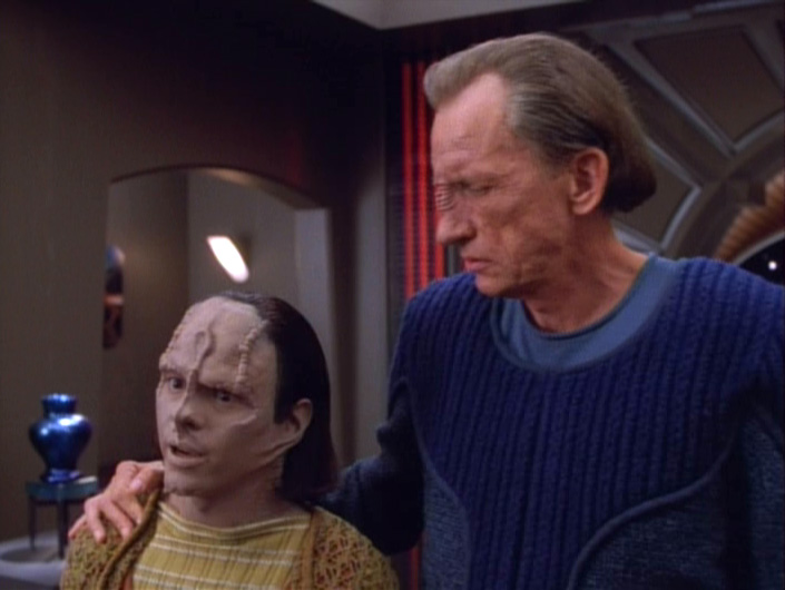 When Zolan tells Bashir that Rugal was being insulted daily and beaten for being Cardassian, Bashir and Sisko swoop in like the Department of Social Services, to remove the child from the home. While we (and Sisko) sense there is more to this accusation, we know that they bear the responsibility of removing Rugal to a safe foster home until the matter can be investigated. In the end, Sisko must decide in favor of Kotran Pa’Dar over Rugal’s Bajoran father because Pa’Dar was tricked into abandoning his son. Luckily, Dukat’s underhanded involvement being uncovered by Bashir means that he will not be able to use Rugal to disgrace Pa’Dar (bonus points that Pa’Dar was willing to take Rugal even if this wasn’t the case).