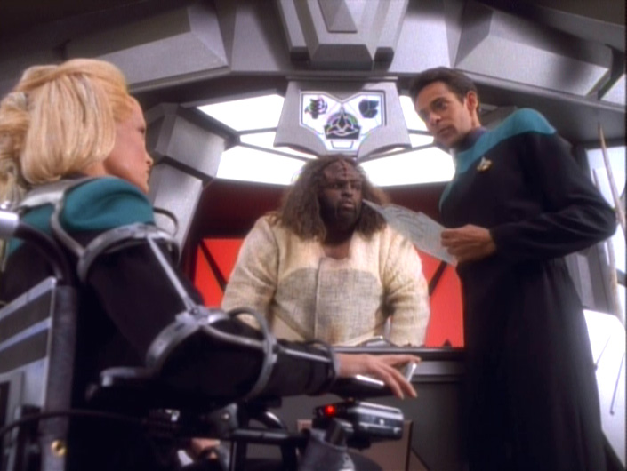 Klingon food resembles Pervish cuisine from Myth Adventures. Speaking of Pervish, Bashir comes off as a bit of a stalker with his exhaustive study of Ensign Melora. But, it works for him in this case. I’m pretty sure that isn’t the best dating strategy.