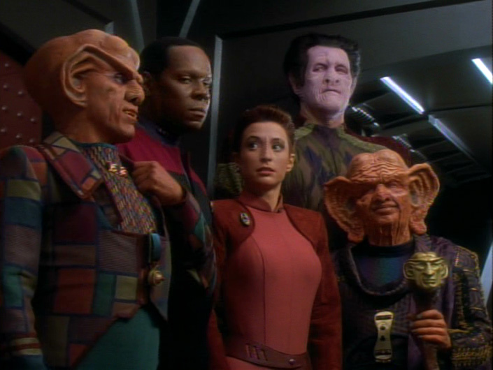 As is always the case, in all things, Jadzia Dax is correct. The Ferengi may well be, as Kira calls them, “greedy, misogynistic, untrustworthy, little trolls”, but they are a lot of fun! Unlike Dax, I wouldn’t want to hang out and play Tongo with them, because I’m certain I’d lose everything I owned, or would ever own at any point in the future, but I love watching others do it. Some fans may find them annoying, but I always love a Ferengi episode and this is an excellent example of the Ferengi in top form. We learn a lot of hitherto unknown details about Ferengi culture, we acquire at least six new Rules of Acquisition, we get a return appearance of Grand Nagus Zek, AND Quark is the first person in the Alpha Quadrant to learn something about the mysterious “Dominion.”