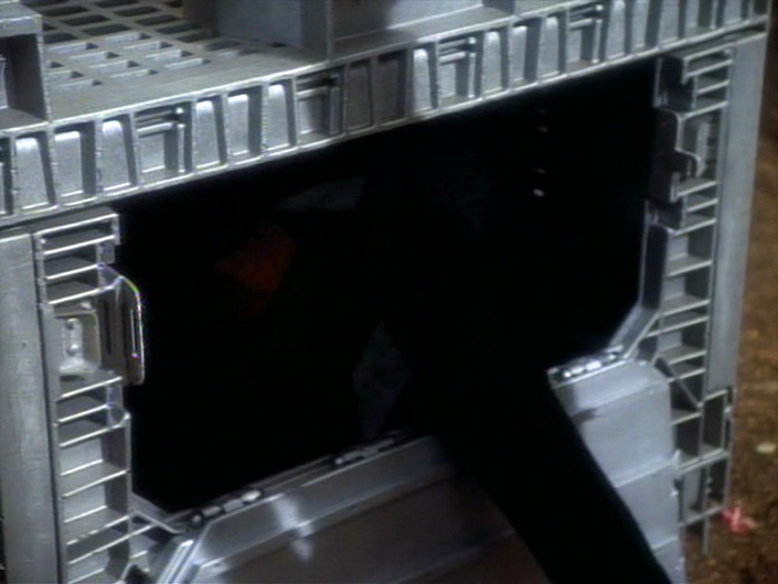 2. Can you put a Black man in a box? Apparently, in 1993, you could. On an episode of The Pod Directive, Tawny Newsome and Paul F. Tompkins engaged in a discussion with TV critic Emily VanDerWerff about the weird slave imagery invoked by Alixus’s punishment of Sisko. They debate (without concluding) whether or not the writers or directors realized this. Having heard many interviews where Avery Brooks espounses his view of racist behavior, it seems unlikely that he wouldn’t have examined the imagery. It softens the racist angle a bit that we first see a white man, the candle-stealing Stephan, being pulled from the box before Sisko is locked inside. It also softens the racist angle that we don’t see Sisko inside the box. We do, however, see his painful crawl back to the box in defiance of the oppressive demands of Alixus. The fact that O’Brien is working in the field during this scene also steps away from a racist angle allowing Alixus’s oppression to stand as its own brand of insanity. In the end, the oppressed prevail and Sisko can tell Kira that “Everything is under control” and mean that he has regained it.