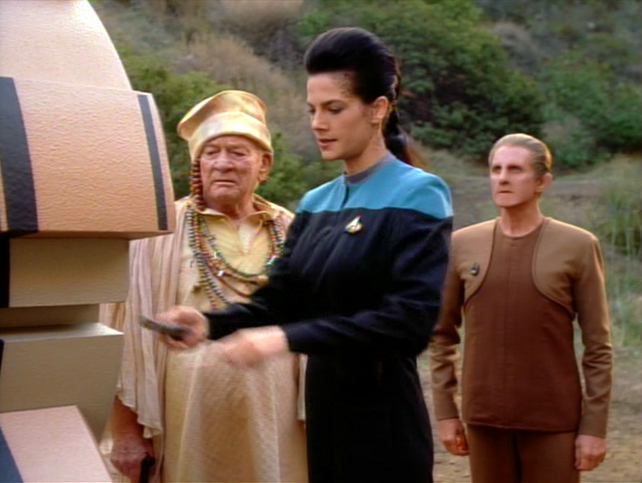 Meanwhile, Jake is having fun times identifying isolinear rods with Chief O’Brien. When Jake reveals that he isn’t really very interested in engineering or going to Starfleet Academy, O’Brien gives him the sage advice he needs to hear. Honestly, I wish I had O’Brien in my life to offer up advice when tough calls need to be made. What Would Chief O’Brien Do? might be my new mantra. Of course, Sisko proves he is every bit as good a father as he is a commander and tells Jake, “Find something you love, then do it the best you can.”