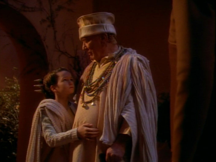 Meanwhile, Sisko has followed up on a seed from last episode where he’s asked O’Brien to mentor Jake in engineering. The story provides another opportunity for us to see the brilliance of a young Cirroc Lofton’s acting. He is polite and tries to stay interested in O’Brien’s lessons, but his eyes glaze over when Miles lists which colors indicate which function of isolinear rods. Thankfully, O’Brien actually gives Jake some good advice about honesty between parents and children. It’s a lovely insight into O’Brien that his father wanted him to be a cello player until Miles ran off to enlist in Starfleet. His father was angry at first, but now expresses pride in him. Ben Sisko is an even wiser father. When Jake admits that he doesn’t want to pursue Starfleet because that is what defines his father and he wants to define himself, Ben doesn’t yell or correct, he immediately expresses understanding and encourages Jake to find something he loves and to do that to the best of his ability. Because Ben gives Jake permission to pursue his own path, Jake doesn’t rebel; in fact, he asks to be dismissed so he can continue studying those isolinear rods.