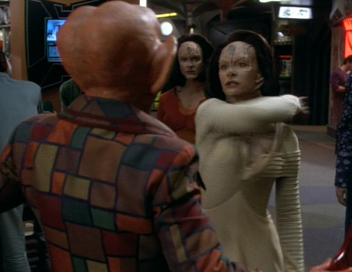 When Professor Natima Lang arrives on the station, all bets are off as Quark is confronted with his greatest lost love. Though she is one of many broken hearts Quark has left in his wake, she is clearly someone Quark actually cared for deeply. He is tenacious in trying to win her back, veering wildly from romantic sweet talk to threats of blackmail to get her to stay. Though she is clearly still furious for his perceived betrayal, he starts to wear her down and convince her that his love is truly genuine. Unfortunately, things get much more complicated when Garak spots her and her students, and she immediately makes it clear that she needs to flee the station as soon as possible.