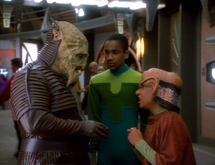 Even though this episode features a wonderful and dramatic primary story with Kira and Mullibok, self-sealing stem bolts will forever be seared into my memory. I absolutely love the crazy “B story” with Jake and Nog in this episode. It is probably one of my favorite Jake and Nog plots from the entire series. It does a great job of showing off Jake and Nog’s capabilities and shrewdness, while also showing us how they complement each other. When one lacks vision, such as Jake not initially seeing the opportunity inherent in the yamok sauce, the other one inevitably steps up. We see this again when Nog can’t see the value in taking the trade for land that Jake advocates for. In the end, putting their heads together, they manage to gain a negotiating advantage over Quark, clearly the Ferengi with the biggest lobes on the station!