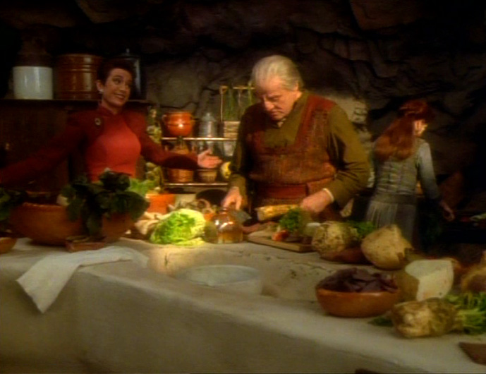 Let me just say, from the top of the episode, that I desperately want to see this couple give it a shot. As Jadzia says, “those seven or eight little wiry hairs that come out of his forehead” do make him look “kinda cute.” I sense a romance brewing!
