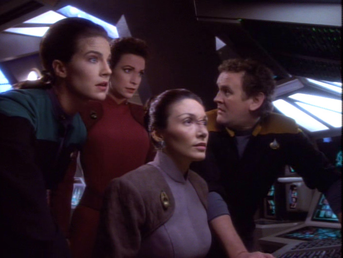 I love the pairing of these two. Lwaxana, who can be a rather overwhelming figure, really shows many shades of her personality in this episode. I have to give a lot of credit to Majel Barrett for her emotional range, and the same compliment goes out to Rene Auberjonois. By the end, I really wished that they had become a couple. The sentient non-biological life form that creates all of the mayhem on the station is really just a plot invention to force Odo and Lwaxana into a turbolift together. To be clear, this is not a criticism. I’m just pointing out that the episode isn’t really about any kind of plot; it’s about the character development. I feel like I write that quite a lot in these reviews, but the characters really are the best part of DS9