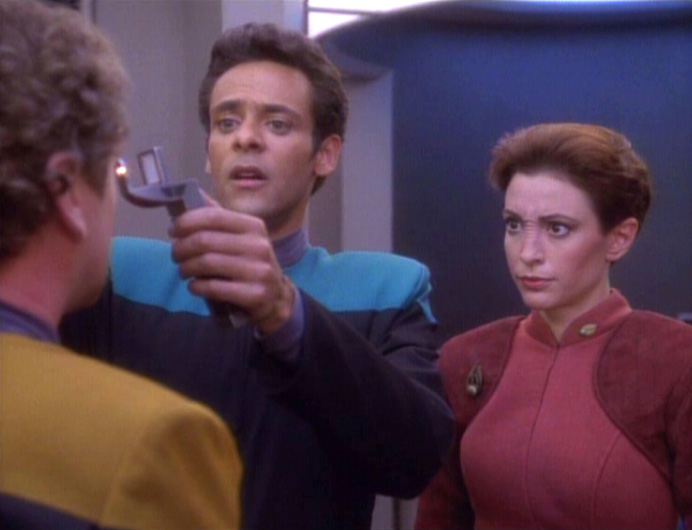 I think it’s unfortunate that the writers didn’t give Julian the satisfaction of being the one to cure the aphasia. He soldiers on admirably throughout the episode, but he ultimately falls victim to it and plays no part in the eventual vaccine creation. While I could see that they wanted to add in the extra drama regarding Kira’s mission to hunt down a culpable Surmak Ren, it feels like Julian gets shorted here as the ship’s doctor. It might have helped audiences connect with the character more if he had heroically developed and distributed the vaccine himself.